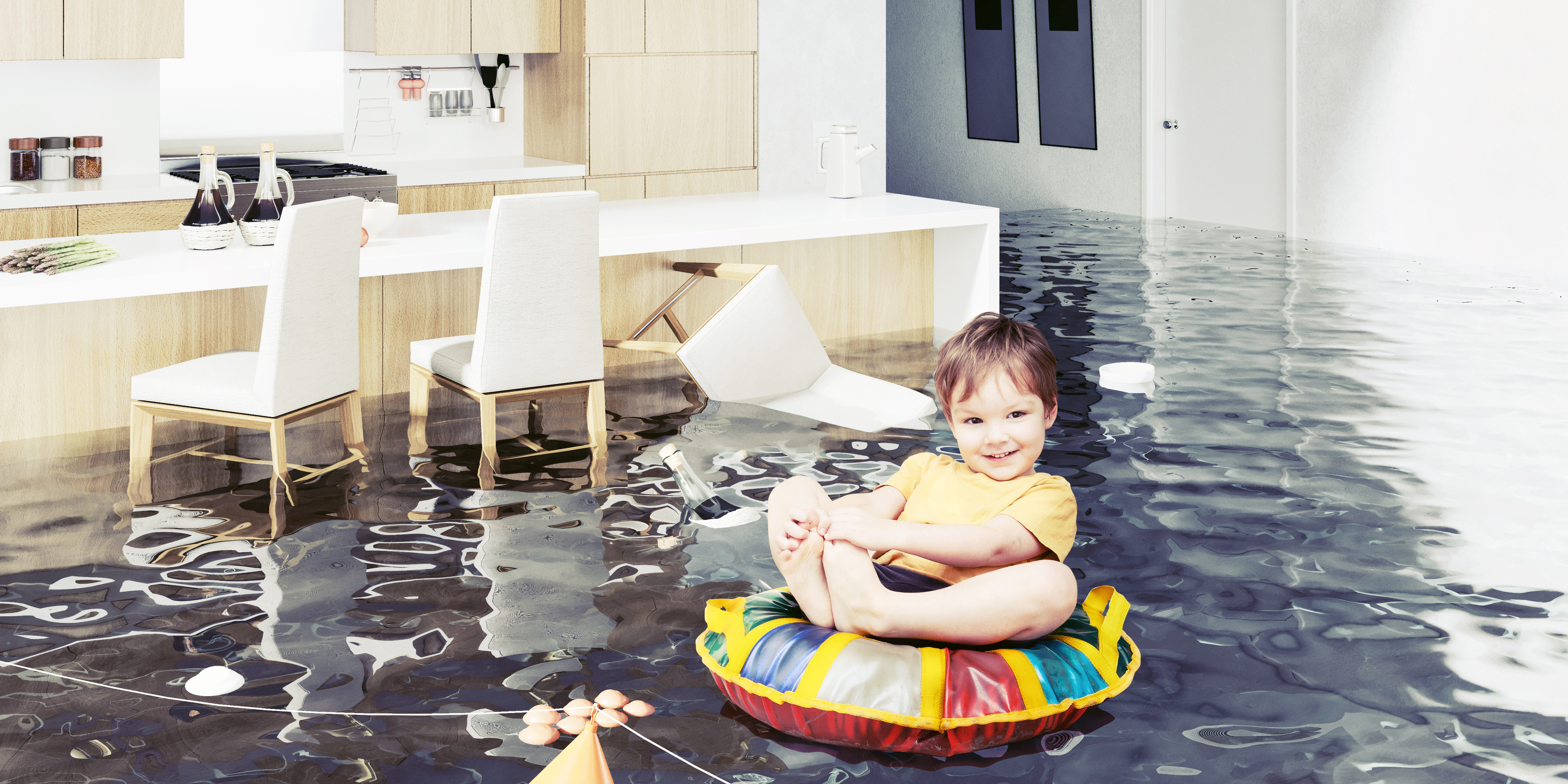 Although this kiddo looks like he is having fun floating around in the living room, we are sure this is not your idea of a great time at the pool. Knowing where your main water shut off valve can possibly prevent your leak from getting this bad. Typically you can find your main water shut off valve located after your city meter, which is located between the street and sidewalk in most neighborhoods.